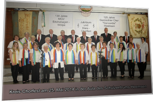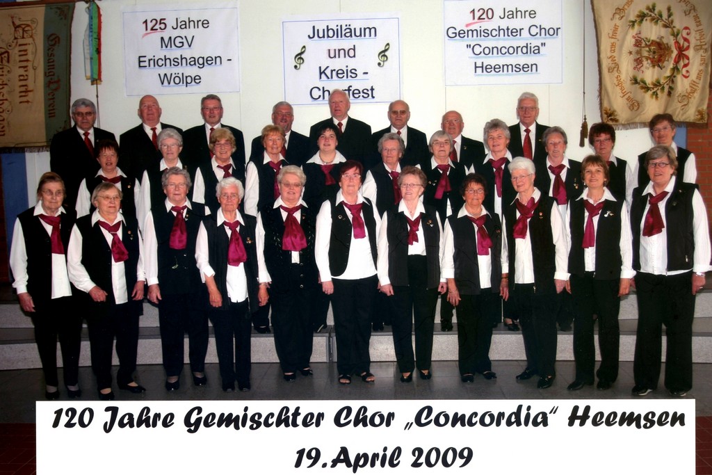 Zu unserem 125. Jubiläum im Mai 2014 konnten wir gemeinsam mit dem befreundeten MGV Erichshagen, der 130 Jahre alt wurde, ein großes Kreis-Chorfest feiern. Auch für unsere Adventskonzerte in Nienburg, Erichshagen und Heemsen bilden wir seit einigen Jahren eine fröhliche Chorgemeinschaft.